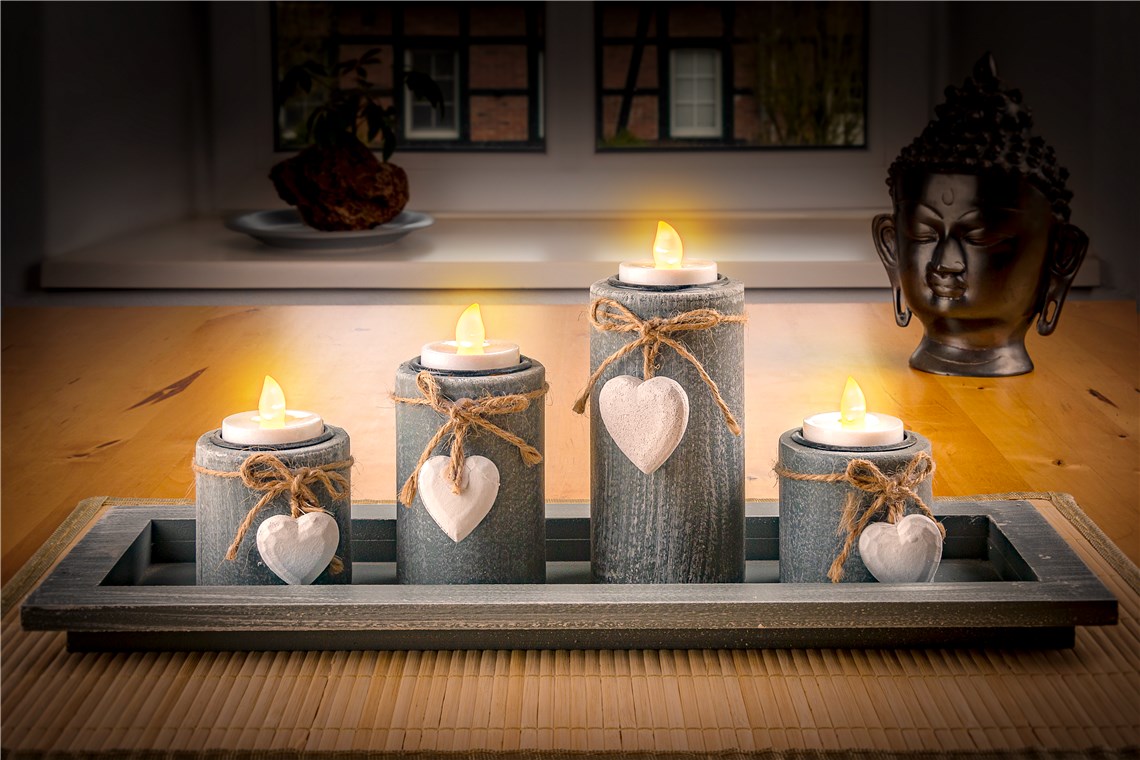 - Stimmungsvolle, natürliche Beleuchtung durch flackernde Flamme
