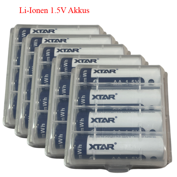 5x 4er Pack Xtar AA 1.5V 3300mWh (2000mAh) Li-Ion Akku in der Plastikbox