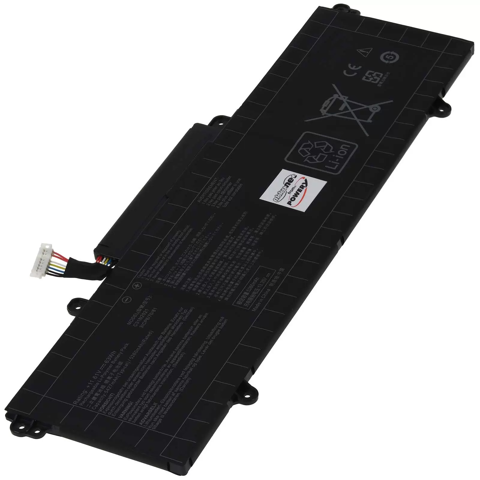 - Kapazität: 5400mAh / 63Wh
