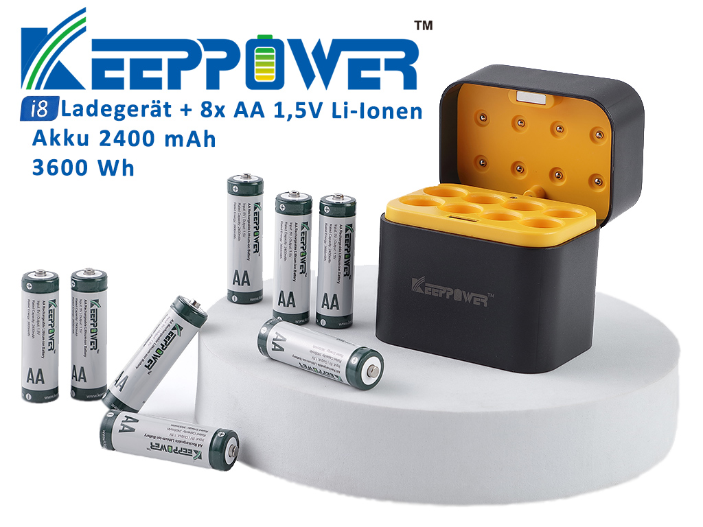 Keeppower I8 Ladegerät mit 8× 1.5V 2400mAh AA Li-Ion Akkus