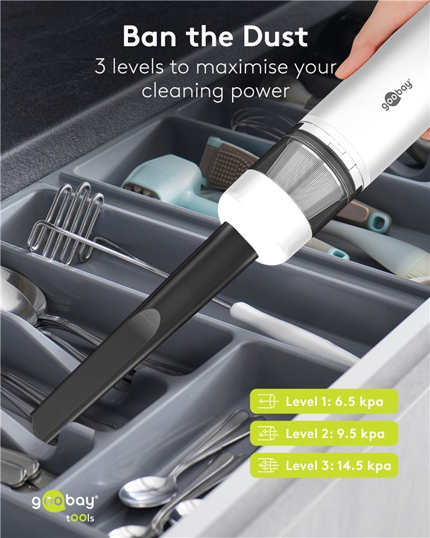 - Handstaubsauger für alle Herausforderungen: Mit 3 Leistungsstufen reinigt der Tischstaubsauger sensible Flächen und hartnäckige Verschmutzungen und lässt sich auch für Vakuumierbeutel verwenden