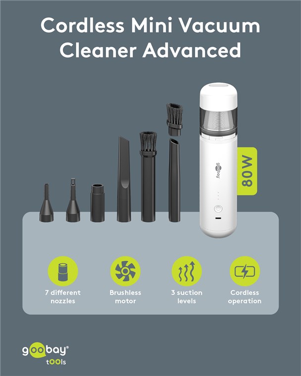 Mini-Staubsauger Advanced mit Akku, weiss mit 80 W, 7 Aufsätzen und 3... mehr