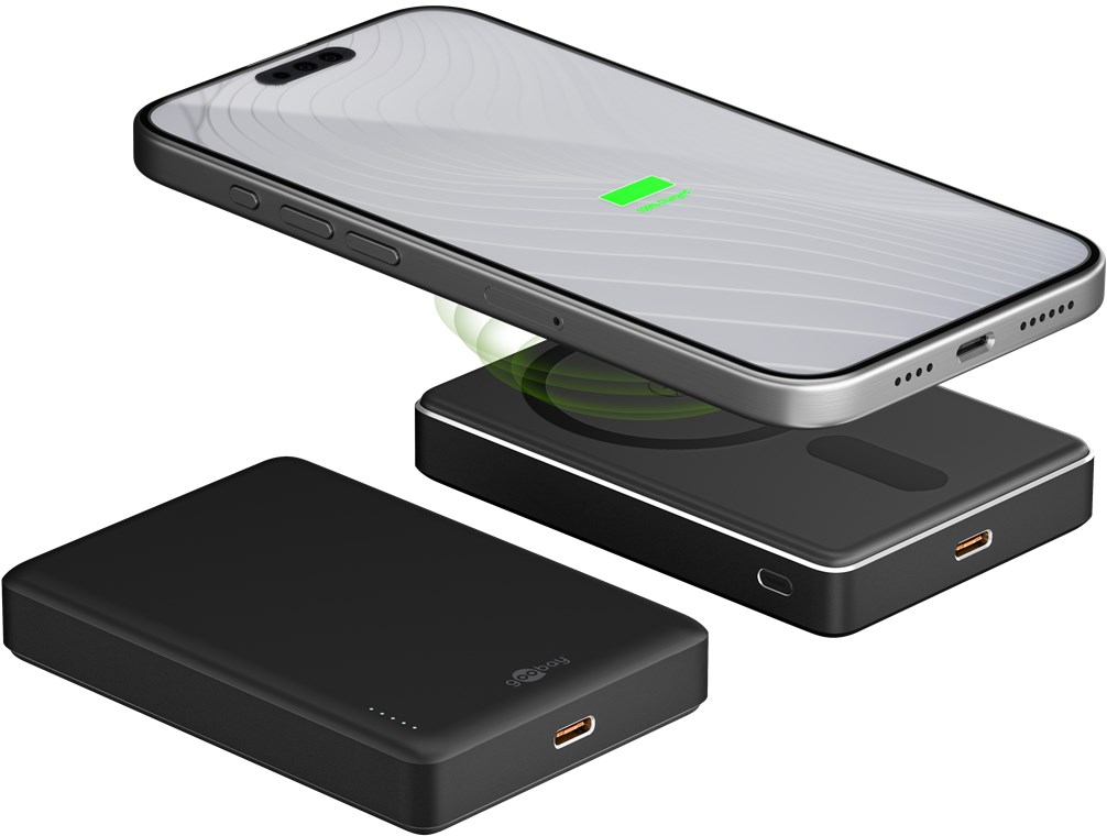 - Super-slim Powerbank zum induktiven Laden von Smartphones, Smartwatches oder Kopfhörern mit bis zu 15 W