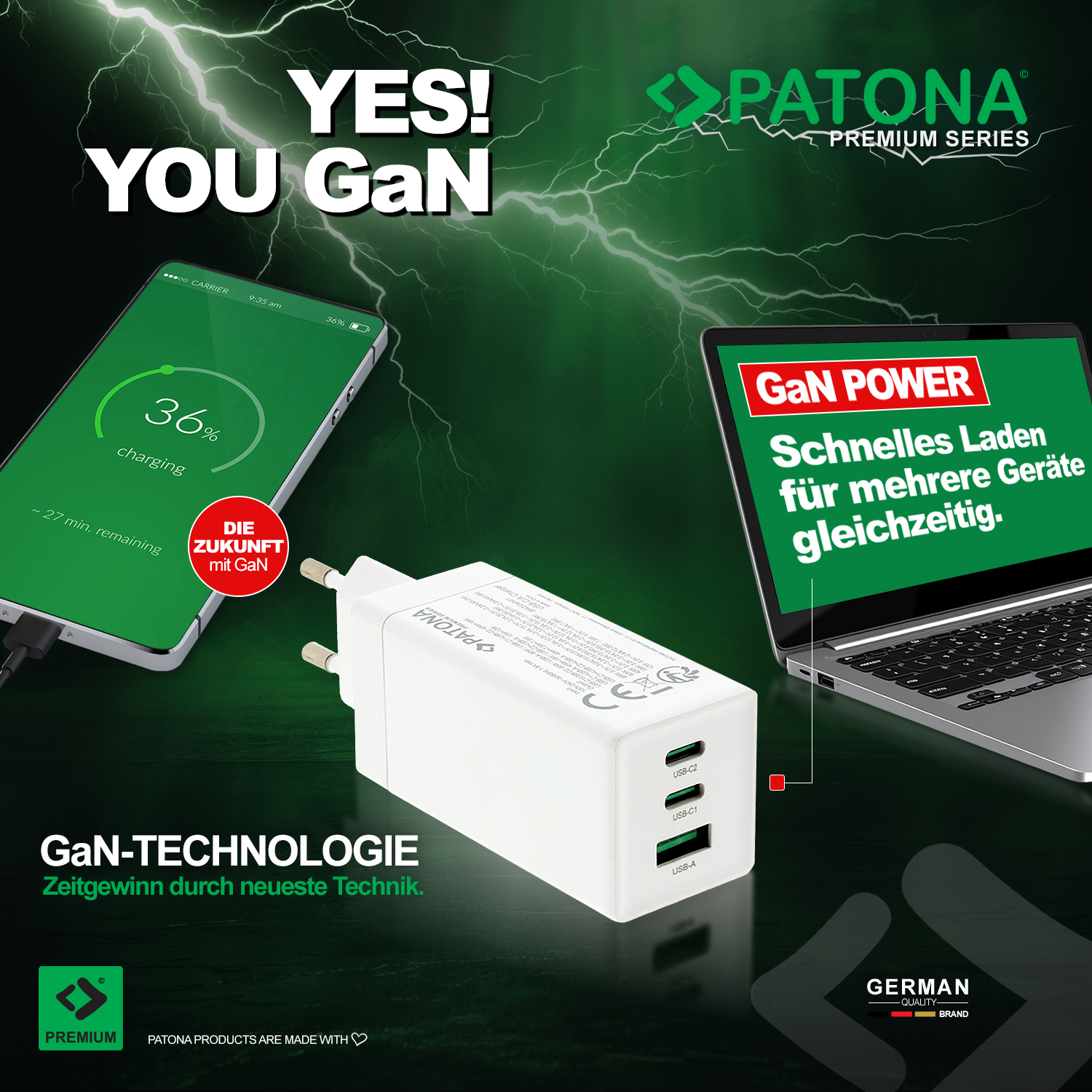 Der Anspruch der Marke PATONA ist ein Höchstmaß an Qualität. Dies beinhalten natürlich auch außerordentliche Sicherheitsstandards. Die perfekt kompatiblen Nachbau-Netzteile beinhalten selbstverständlich alle elektronischen Sicherheitsvorkehrungen, wie Ladungsstrombegrenzung, Temperatur- und Überstromschutz der Original-Netzteile und genügen den höchsten europäischen Qualitätsstandards. So werden nur hochwertige und qualitätsgeprüfte Kunststoffe, Kabel und Elektronikbauteile verbaut. Im Hause PATONA wird stets Spitzenqualität zu fairen Preisen geboten. Selbst diese neuen Netzteile sind für erschwingliche Preise zu erwerben.